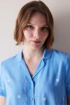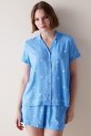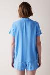 Into The Blue SS Gömlek Şort Set, romantik bir dokunuşla tasarlanmış rahatlık ve şıklığı bir araya getiren bir pijama takımıdır.