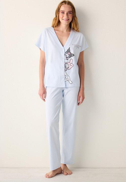 - Homewear koleksiyonuna özel tasarlanmış, evde rahatlığı ve şıklığı bir arada sunan Sanrio desenli pijama takımı