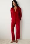 Red Velvet Ls Gömlek Pantolon Set, evde pijama şıklığını ve konforu bir arada sunar.