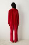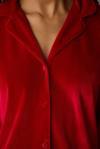 Kırmızı kadife dokusu ile zarif ve rahat olan bu set, gömlek ve pantolon olarak takım halinde satılmaktadır.