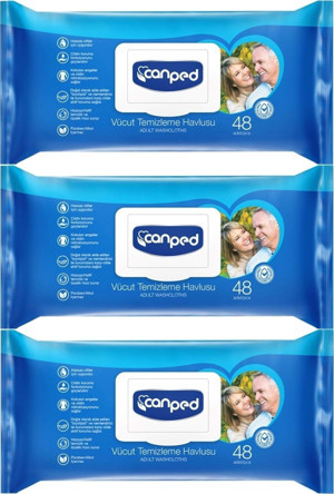 Canped Hasta Vücut Perine Temizleme Islak Mendil Havlu 48 Yaprak Xl (3 Lü Set) Plastik Kapaklı