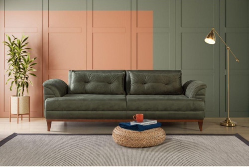 Perla Sofa Madrid Üçlü Yataklı Koltuk Bora Yeşil