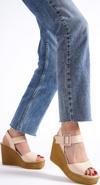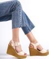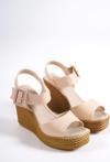 Joy Ayakkabı PERLA Tokalı Lastikli Dolgu Topuklu Ortopedik Taban Hasır Görünümlü Kadın Sandalet CKT - Ten