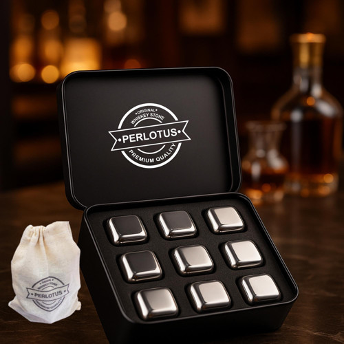Perlotus markasının şıklığı ve fonksiyonelliğini bir arada sunan bu özel viski taşı seti, içecek keyfinizi bir üst seviyeye taşıyor. Her biri 3 cm boyutunda olan 9 adet paslanmaz çelik viski taşı, içkinizi sulandırmadan uzun süre boyunca ideal sıcaklıkta tutar. Bu sayede tadını bozmadan keyifli bir viski deneyimi yaşarsınız.