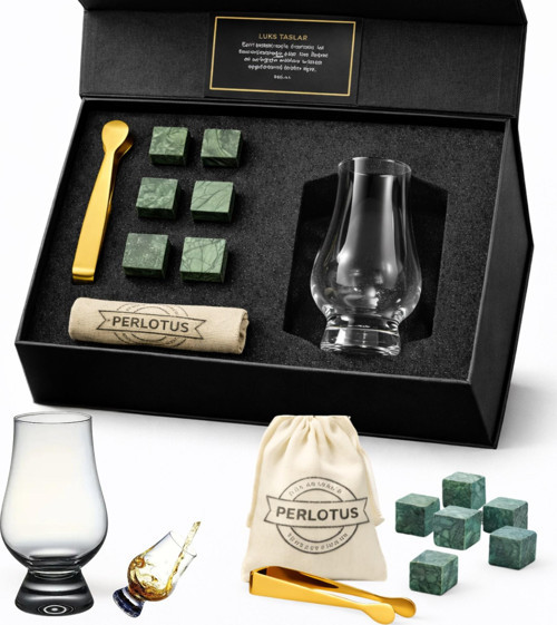 Perlotus Lotus Viski Tadım Seti 190 ml Aroma Bardağı + 6 Granit Viski TaşıPremium Hediye Kutulu Tadımcı Seti