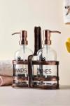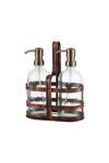 Şeffaf cam şişeler ve retro eskitme metal stand bir araya geliyor; ortaya hem nostaljik hem de şık bir düzen çıkıyor. 500 ml kapasiteli iki şişesiyle el sabunu ve bulaşık deterjanını ayrı ayrı yerleştirebilir, metal taşıyıcısıyla tezgâh üzerinde düzeni ve estetiği bir arada sağlayabilirsiniz. Dayanıklı cam yapısı ve klasik tarzı sayesinde hem banyolarda hem de mutfaklarda fark yaratır.