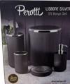 Parça Sayısı: 5 Parça • Ölçü: 20x25 cm • Renk: Gri • Malzeme: Plastik • Birinci sınıf plastik üretilmiştir. • Darbelere karşı oldukça dayanıklıdır. • Metalik renk ile kaplanmıştır ve renk solması yapmaz. • Banyonuza ışıltı katacak olan set, hem kullanışlı hem de dekorasyon olarak tercih edebilirsiniz.Silver başlıklı sabunluğu ve ürünlerin üzerinde bulunan ince detay tasarıma sahiptir. • Sağlıklı ve kaliteli plastik çizgilere sahip olan banyo seti, banyonuzun dekorasyonuna asillik katacaktır. Ürün İçeriği • Çöp kovası: 1 adet • Klozet fırçası: 1 adet • Sıvı sabunluk: 1 adet • Katı sabunluk: 1 adet • Diş fırçalık: 1 adet