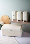 Göz alıcı krem rengi ve parlak metal detaylarıyla mutfağınıza zarif bir dokunuş katarken, ekmeğinizi ve kuru gıdalarınızı taze tutmanıza yardımcı olur.