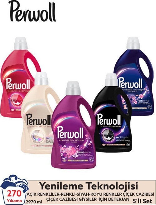 Perwoll Sıvı Çamaşır Deterjanı 3 x 2,97L (162 Yıkama) Siyah+ Renkli + Açık Renkliler + 2 x 2,75 (100 Yıkama) Çiçek Cazi