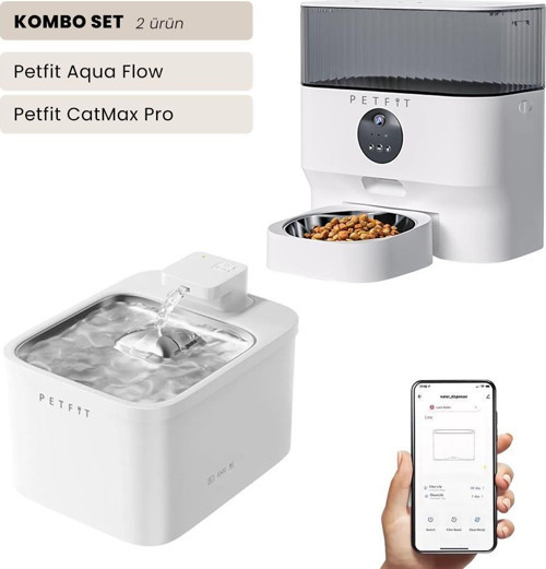 Petfit Aqua Flow WiFi Akıllı Otomatik Kedi Köpek Su Pınarı+Petfit CatMax Pro 5L WiFi Akıllı Otomatik Mama Kabı