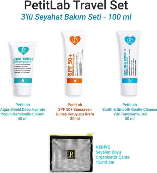 PetitLab Travel Set, günlük cilt bakımının olmazsa olmaz üç adımını — temizleme, nemlendirme ve koruma — pratik seyahat boylarında bir araya getirir.