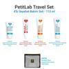PetitLab Travel Set; cildin gün boyu ihtiyaç duyduğu dört temel ürünü pratik seyahat boylarında bir araya getirir.