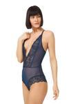 Petrol Yeşili Çıtçıtlı Dantel Transparan Sırt Çapraz İp Bodysuit