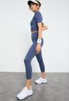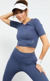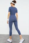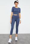 Petrol Yüksek Bel Kapri-Crop T-Shirt Slim Fit Kadın Tayt Takım - 95285
