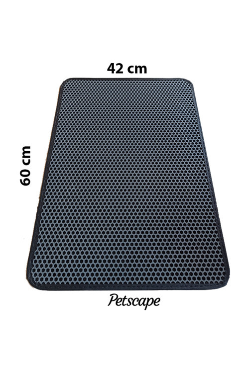 Petscape Elekli Kedi Tuvaleti Önü Paspası – Kedi Kumu Toplayıcı – Çift Katmanlı Sert Plastik 60x42cm - Gri