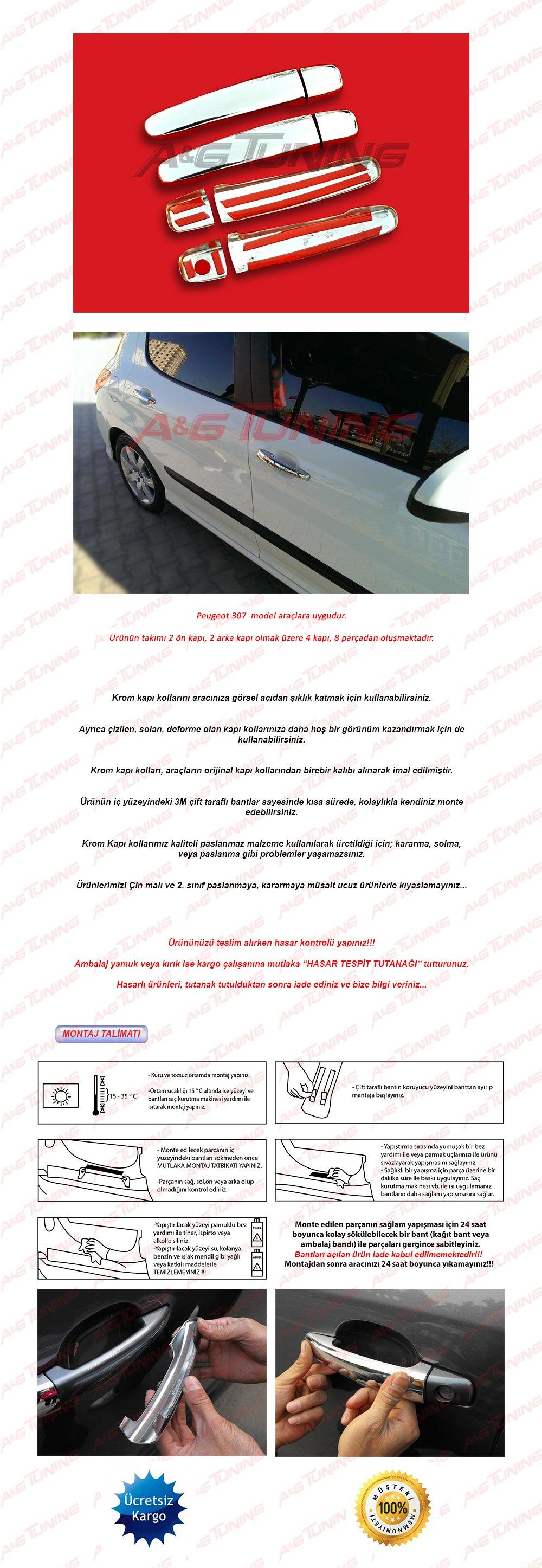 PEUGEOT 307 Krom Kapı Kolu Tk 4 Kapı
