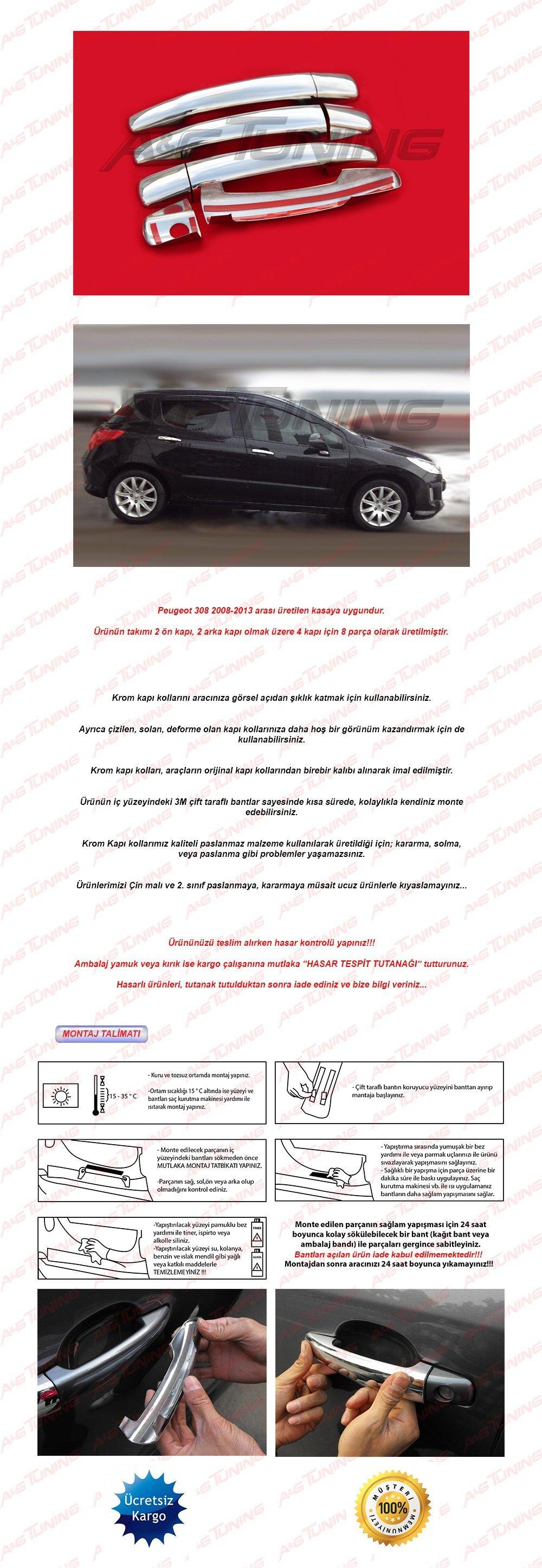 PEUGEOT 308 Krom Kapı Kolu Tk 2007-2013 4Kapı