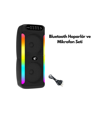 RGB ışıklı çift hoparlörlü taşınabilir Bluetooth hoparlör, hem güçlü ses kalitesi hem de şık tasarımıyla öne çıkar.