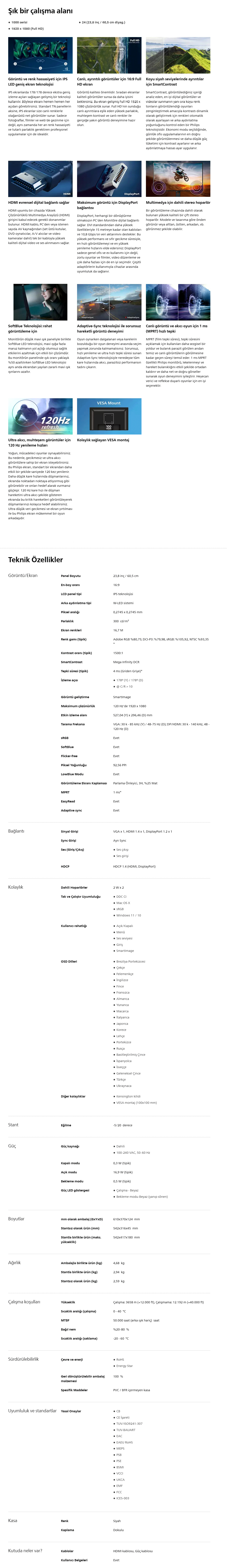 24E1N1200A/00 23.8'' 1 ms Full HD IPS 120 Hz Monitör