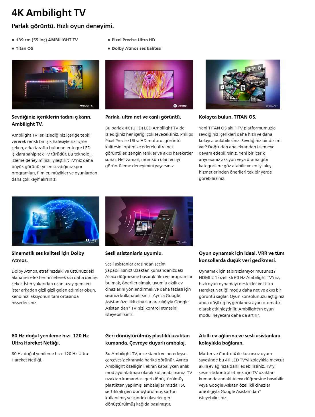 Philips 55PUS8609 4K Ultra HD 55" 140 Ekran Uydu Alıcılı Smart LED TV