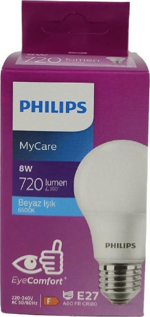 8W güç tüketimi ile klasik 60W akkor ampullere eşdeğer ışık şiddeti üretir, böylece elektrik faturasından tasarruf ederken kaliteli aydınlatma performansı elde edersiniz. Philips MyCare LED teknolojisi titreme yapmayan, hızlı ışık veren ve göz konforunu artıran bir deneyim sunar.