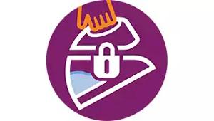 Evde kolayca taşımak için ütünüzü güvenli bir şekilde ütü istasyonuna kilitleyin ve sıcak ütü tabanınıza temas etme riskini azaltın.