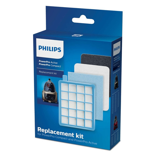 Philips PowerPro Active ve PowerPro Compact serisi elektrikli süpürgeniz için tasarlanmış, Orijinal Kutulu, 4 parçalı Komple Bakım Filtre Seti. Bu set, cihazınızın sağlıklı ve yüksek performansta çalışması için gereken tüm temel filtreleme bileşenlerini bir arada sunar: motoru koruyan yıkanabilir sünger filtre, egzoz havasını temizleyen yüksek verimli yıkanabilir HEPA filtre ve ek motor koruması sağlayan 2 adet yıkanabilir mikro filtre. Süpürgenizin tüm filtrelerini tek seferde yenileyerek ilk günkü performansına döndürmek için en ideal ve ekonomik çözümdür.