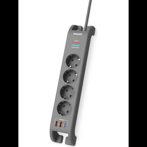 Philips SPN4140GA Akım Korumalı Priz 4'lü + 2x USB-A 18W + 1x USB-C 20W - 2m Kablo
