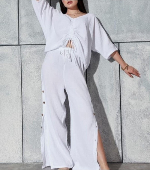 Casual ortamlarda rahatlıkla tercih edebileceğiniz bluzlu pantolonlu alt