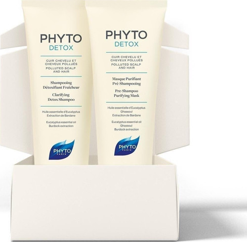 Phyto Detox şampuan saçları derinlemesine arındırır, canlandırır. Saçlardaki mat görünümü derinlemesine temizler. Şampuan öncesi kullanılan maske saç derisi ve saç tellerini canlandırmak için içeriğindeki okaliptüs, dulavratotu ve kumkat özleriyle tam bir detoks deneyimi sunar. Avantajlı paket.