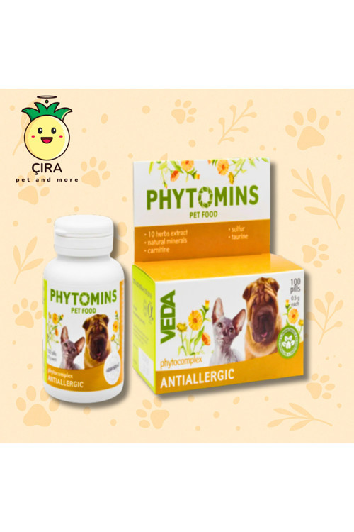 🌿 VedaVet PHYTOMINS ANTIALLERGIC – Alerjiye Karşı Bitkisel Takviye (100 Tablet) VedaVet PHYTOMINS ANTIALLERGIC, kedi ve köpeklerde alerjiye bağlı problemlerin önlenmesine ve giderilmesine yardımcı olan bitkisel içerikli bir tamamlayıcı yemdir. Gıda, ilaç, kimyasal ve paraziter alerjilere karşı destek sağlar.