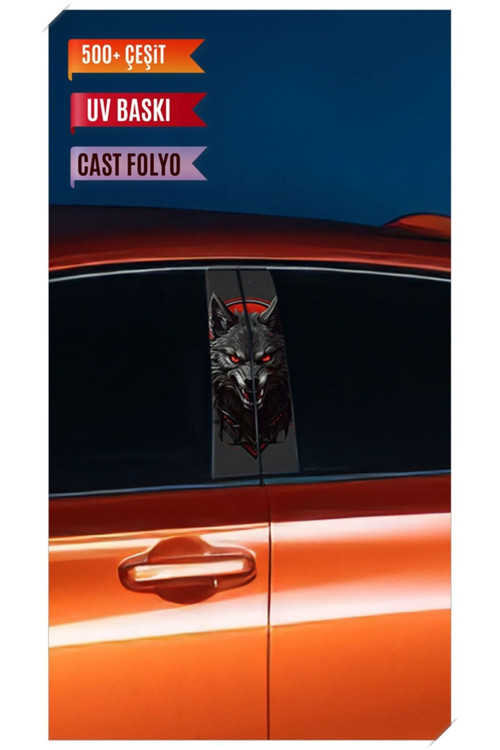 Pi Dekorasyon Araç Kapı Direk Kaplama Folyosu Kurt Desenli (Sağ Sol Takım) (2 Adet) - 22x50 Cm
