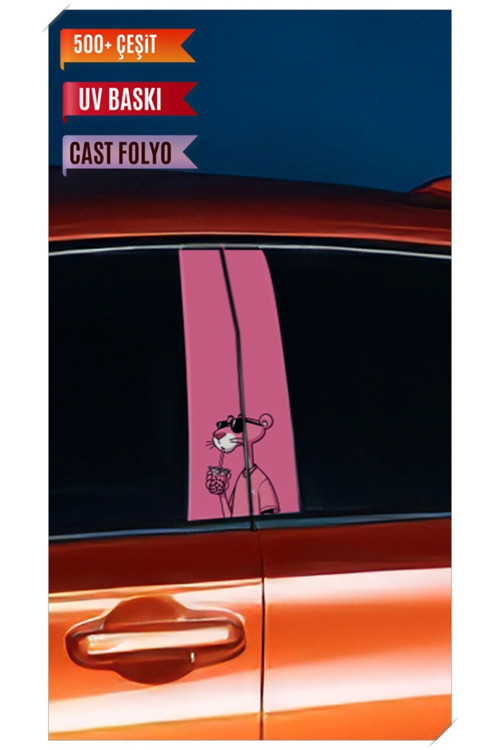 Pi Dekorasyon Araç Kapı Direk Kaplama Folyosu Pembe Panter Desenli (Sağ Sol Takım) (2 Adet) - 22x50 Cm