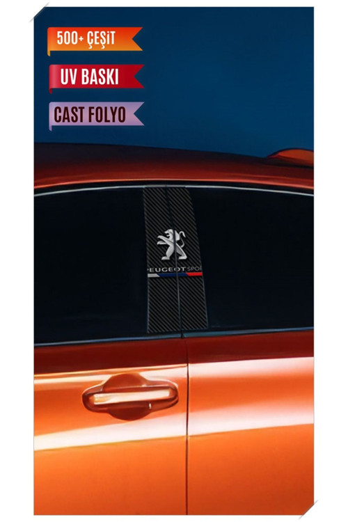 Pi Dekorasyon Araç Kapı Direk Kaplama Folyosu Peugeot Desenli (Sağ Sol Takım) (2 Adet) - 22x50 Cm