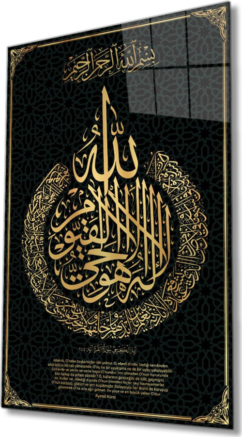 Ayetel Kürsi Ayet Kuran Dini İslami Cam Tablo Ev ve Ofis Duvar Dekoru Hediyelik Büyük Cam Tablo