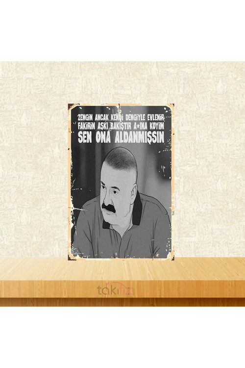 Pi Dekorasyon Kolpaçino Fakirin Aşkı Bakıştır 20x30 Cm Retro Ahşap Tablo