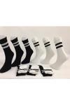12 Çift Unisex Beyaz Renkli Tik Desenli Yıkamalı Kolej Tenis Çorap