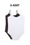 6 Adet Ip Askılı Kadın Çıtçıtlı Body Zıbın Siyah Beyaz