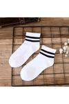 Çizgi Detaylı Beyaz Unisex Kolej Çorap 4 Lü Ekonomik Paket