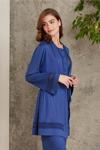 Pierre Cardin 2800 Kadın Lacivert Dantelli Penye 3'lü Sabahlıklı Pijama Takım