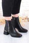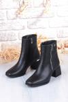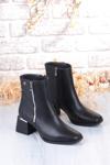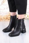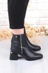 Pierre Cardin 54971 Siyah Cilt Fermuar Detaylı Kalın Topuklu Kadın Bot