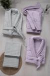 6 Parça Jakarlı Aile Bornoz Seti-Wave Soft Lila Gri