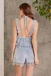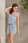 Findit Kadın Lacivert Dantel Detaylı Beyaz Noktalı Şortlu Gecelik Pijama Takımı 5049