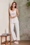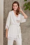 Dantelli Sabahlıklı Penye Pijama Takımı Ekru