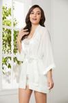 Ekru 3'lü Saten Dantelli Şort Ve Şifon Dantelli Sabahlık Takımı 2475