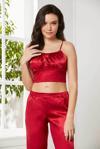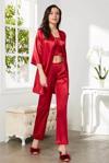 Pierre Cardin Kadife Saten 3'lü Pijama Takım 2075 Kırmızı