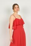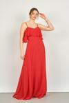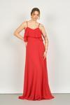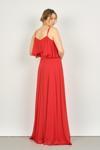 Detay: Kloş, uzun, astarlı abiye elbise;
