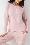 Estiva Puantiye Desen Önden Düğmeli Süet Bayan Pijama Takım - Image 1