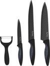 1 adet 20 cm Şef Bıçağı, 1 adet 20 cm Et Bıçağı, 1 adet 13 cm Çok Amaçlı Bıçak, 1 adet Soyacak
