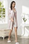 Saten Dantelli Gecelik Sabahlık Takım 4280 Pudra